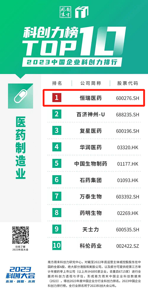 创新再获认可,AG庄闲医药蝉联“中国企业科创力排行”医药制造业榜首