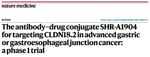 AG庄闲医药CLDN18.2 ADC创新药SHR-A1904治疗胃癌临床研究结果荣登Nature Medicine